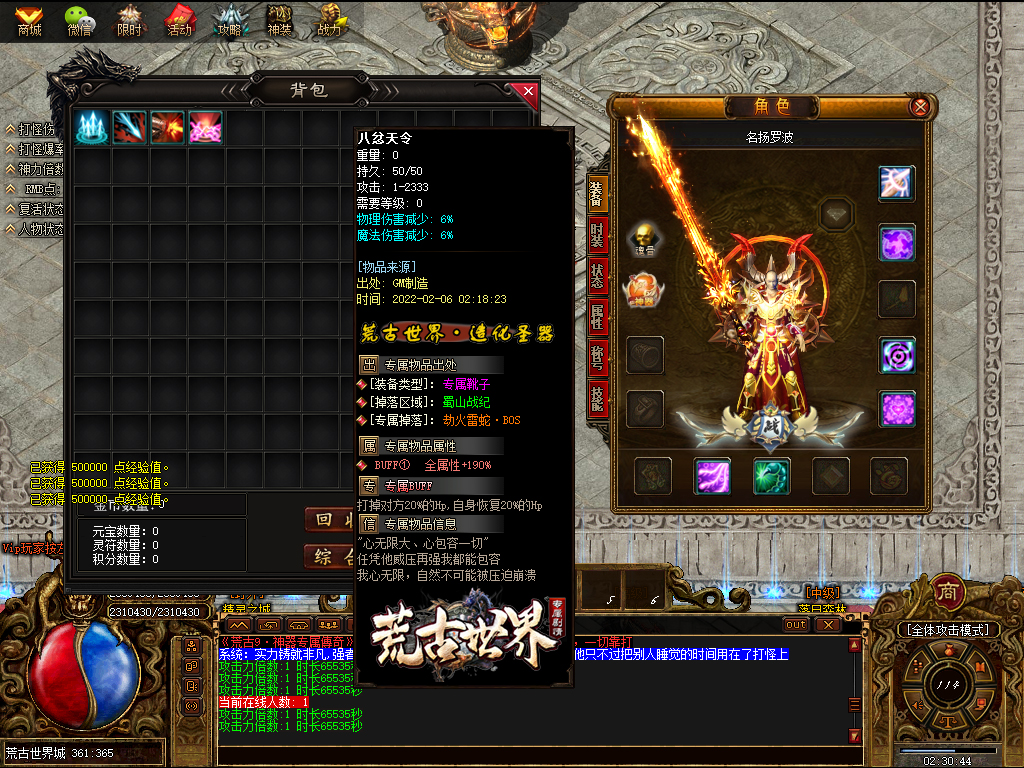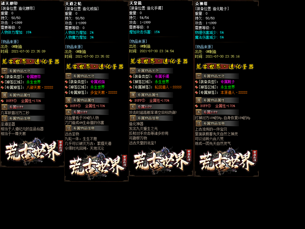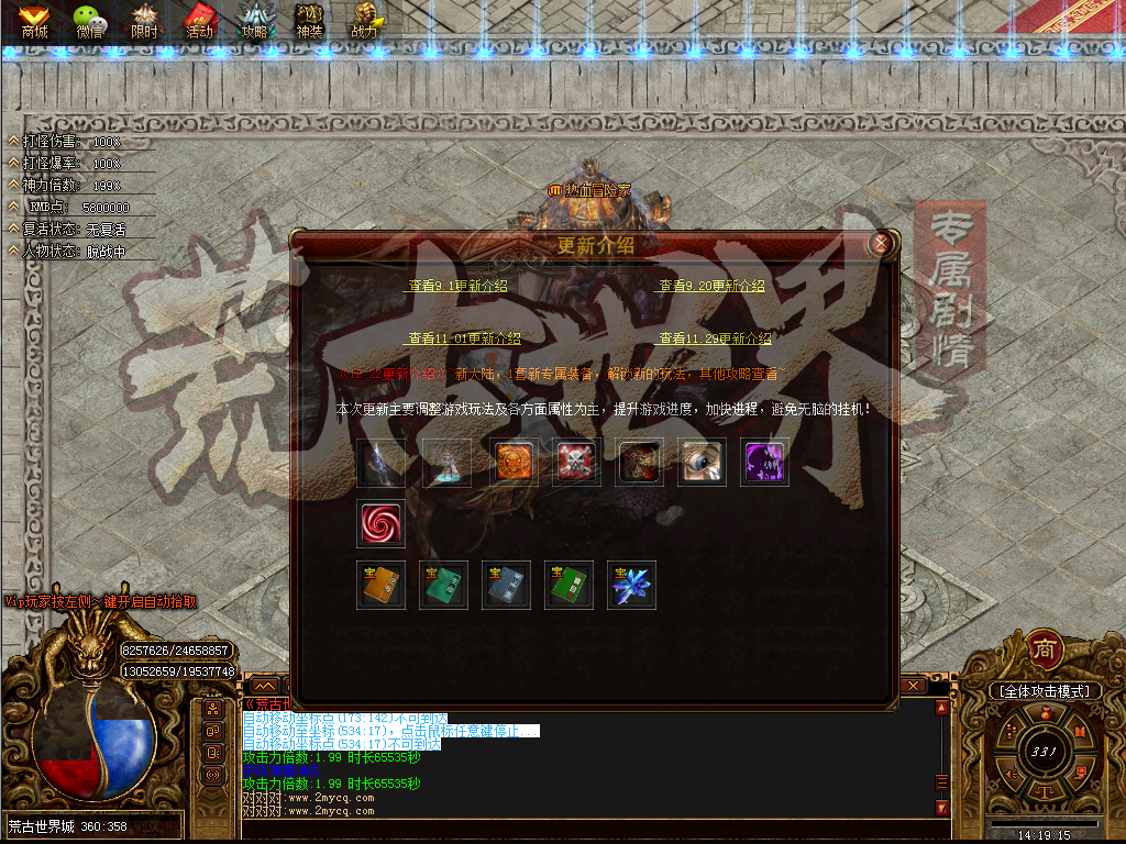 3.重写堕落魔域之后怪物所有爆率(因刷新怪物多了和时间缩短,此次只提高基础爆率的30%)!